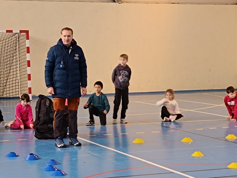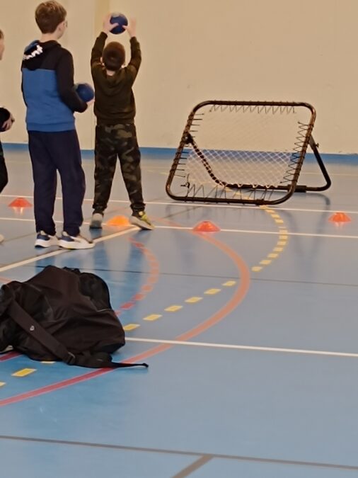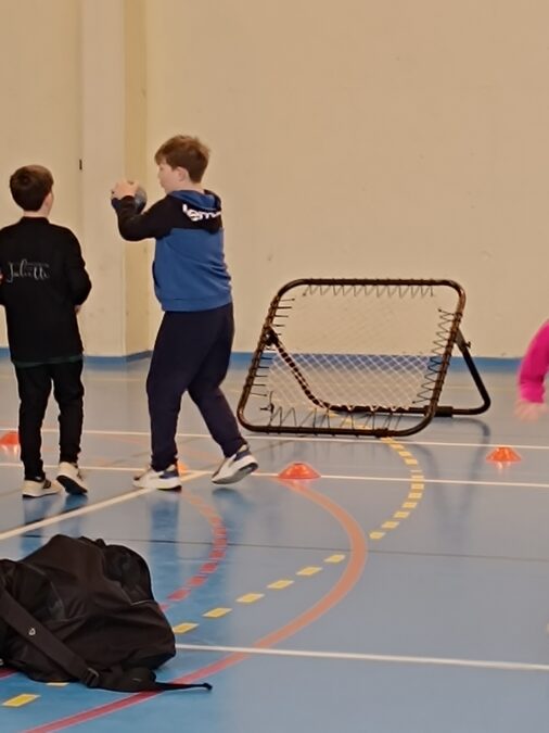 Les élèves bénéficient d’une initiation au tchoukball grâce à l’intervention de Mathieu, intervenant UGSEL. Ce sport collectif, basé sur des rebonds sur des cadres inclinés, favorise le jeu sans contact et met l’accent sur la coopération plutôt que l’opposition.